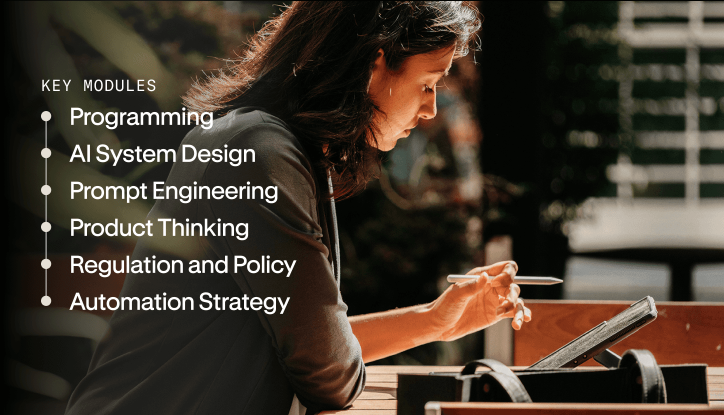 For those ready to lead the AI age, this course creates AI-first technologists who can rewire how your business works, creates, communicate, and scale.